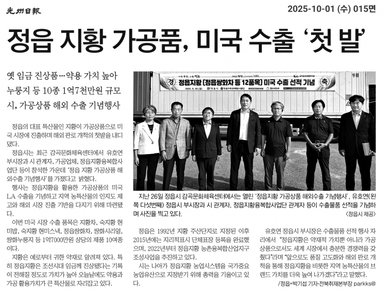 정읍 지황 가공품, 미국 수출 '첫발' 페이지 정보 작성자 칠보농협 작성일25-10-15 14:10 조회61회 댓글0건 관련링크 다음글 목록 본문 정읍시, 정읍지황 가공상품 美 LA 첫 수출...해외시장 개척 본격 댓글목록 등록된 댓글이 없습니다. 다음글 목록